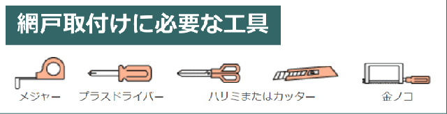 【網戸取付けに必要な工具】メジャー プラスドライバー ハサミまたはカッター 金ノコ