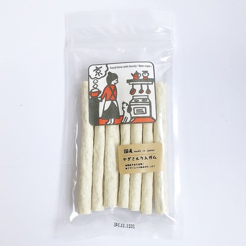 ヤギミルクの風味がたっぷり。 ストレス解消にもってこいです。 国産牛皮を使用。 ヤギミルクをプラスし、風味豊かに仕上げました。 注意事項 ●直射日光、高温多湿を避けて保存してください。 ●また開封後は冷暗所で保管しなるべく早くお召し上がりください。 一日の給与量