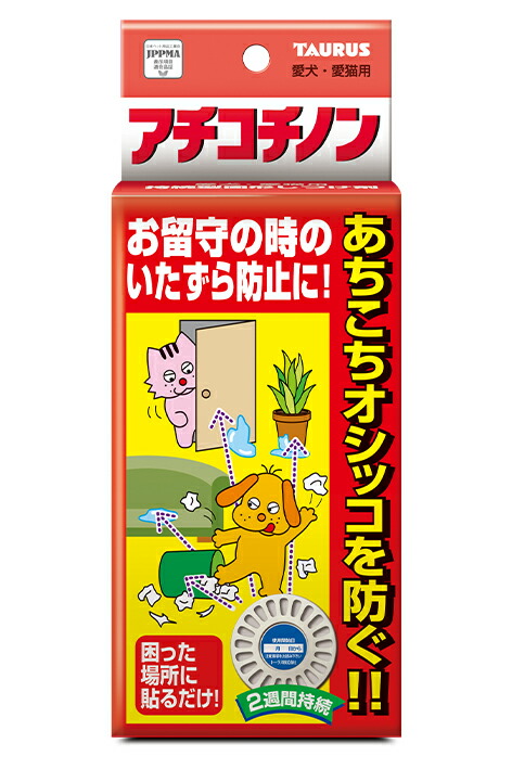 与え方 臭いは強すぎないので室内でも気になりません。 【トイレのしつけ】 ●トイレ以外のオシッコをされる場所に貼ってください。 ●オシッコをしてはいけない場所を継続的に教えます。 【いたずらのしつけ】 ●いたずらをされる場所の鼻の高さに貼ってください。 ●いたずらをしてはいけない場所を継続的に教えます。 ●カジリノン(犬)やヒッカキノン(猫)を併用すると、より効果的です。