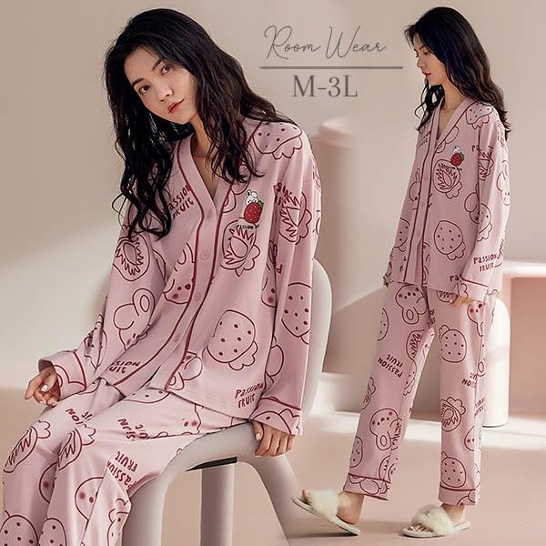 ルームウエア 上下セット 部屋着 イチゴ柄 春 長袖 かわいい 秋 着心地よい パジャマ オシャレ 可愛い 上下セット レディース 女性 ゆったり 寝巻き 大きいサイズ dv238zezezr