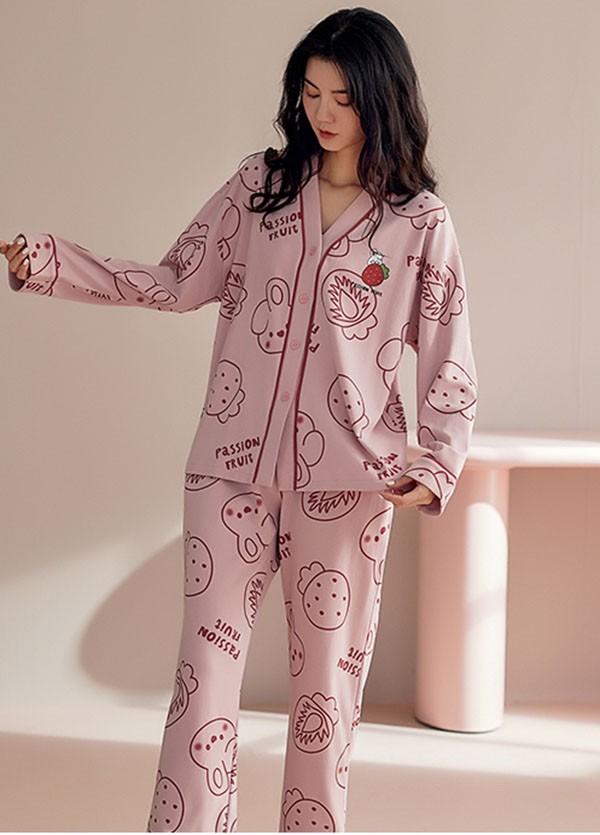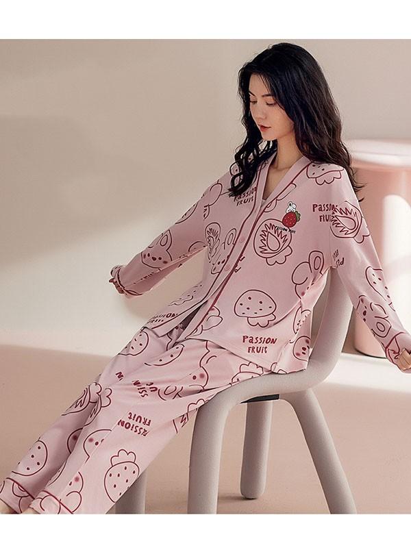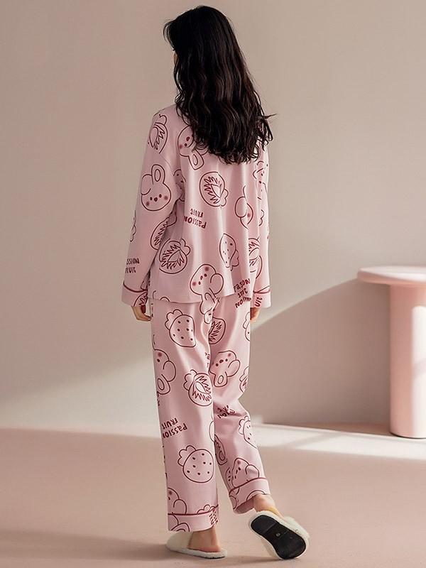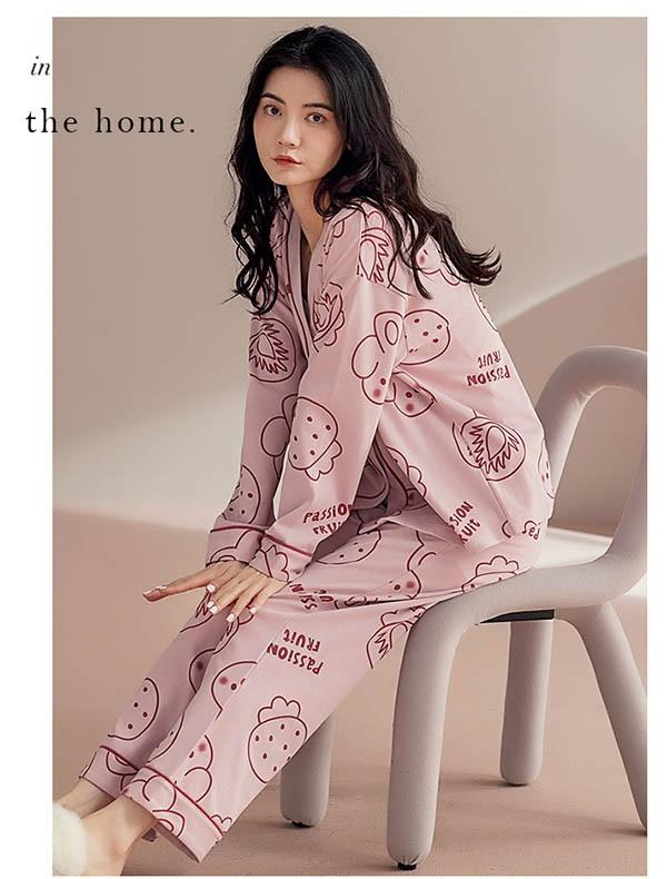 ルームウエア 上下セット 部屋着 イチゴ柄 春 長袖 かわいい 秋 着心地よい パジャマ オシャレ 可愛い 上下セット レディース 女性 ゆったり 寝巻き 大きいサイズ