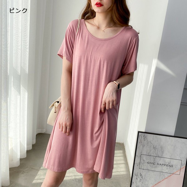 【レビュー投稿で+5%還元】ワンピース 半袖 夏用 夏服 レディース ゆったり Tシャツワンピース ミニ丈 膝丈 カットソー ワンピース リゾートワンピース 沖縄 マキシ丈 海 ハワイ ビーチ サマー ラウンドネック シンプル 無地