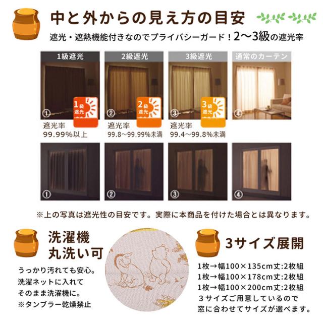 くまのプーさん 幅100×丈178cm 遮光 カーテン 2枚セット Disneyzone Disney/ディズニー クラシックプー 遮熱 プー ティガー pooh イーヨー 洗濯可能 ドレープカーテン(代引不可)【送料無料】