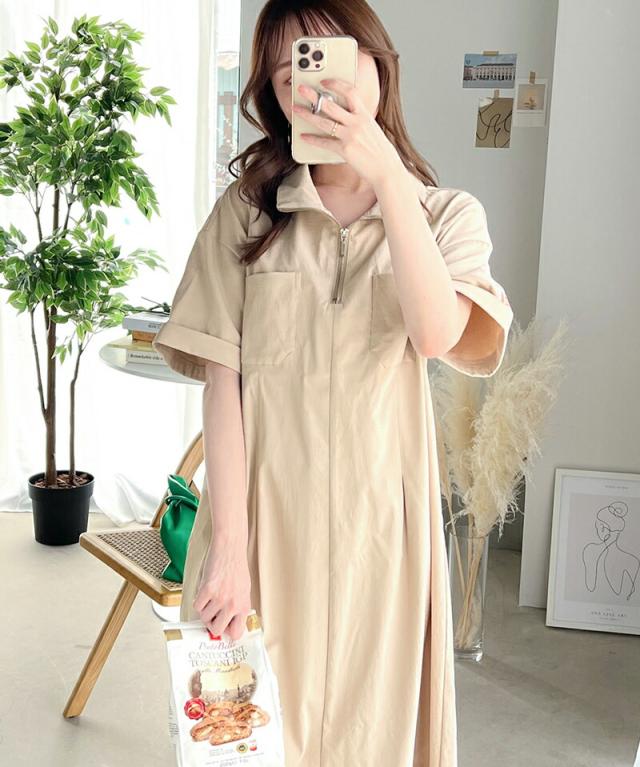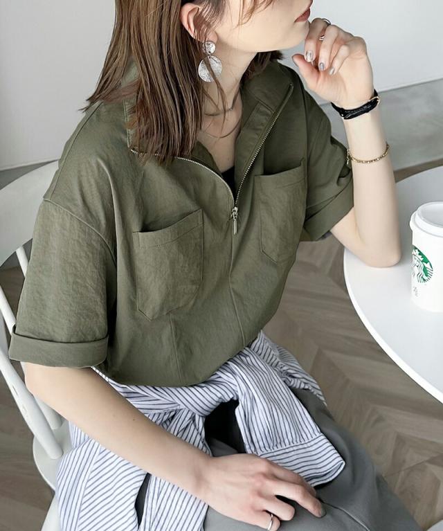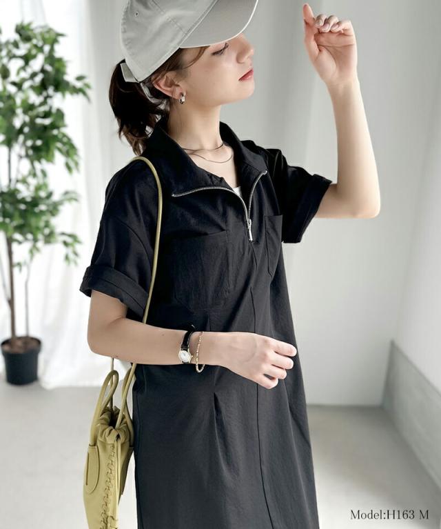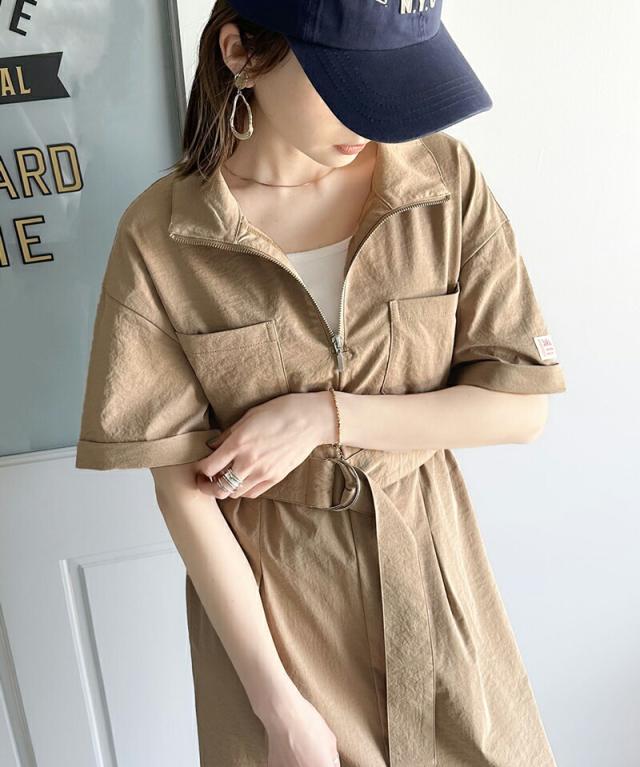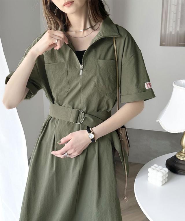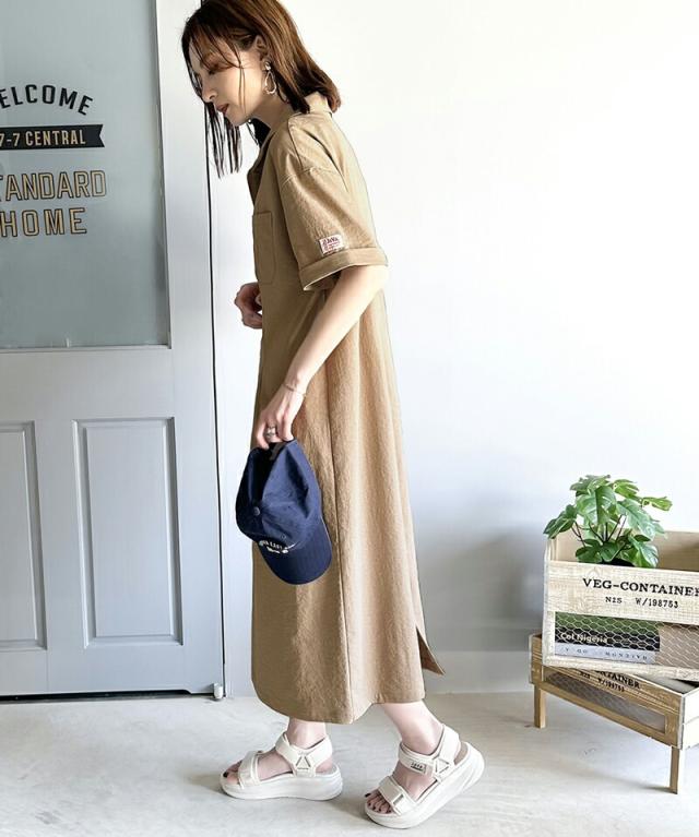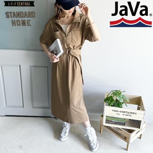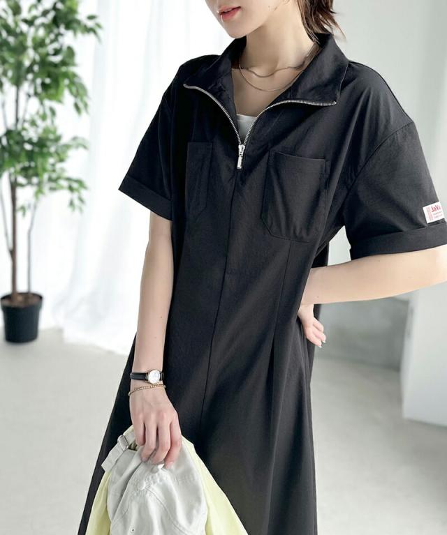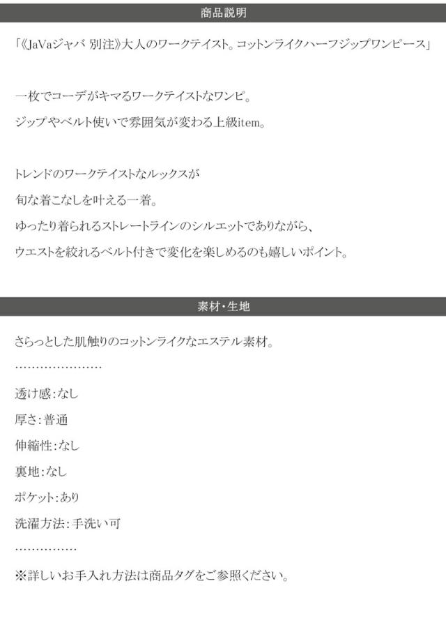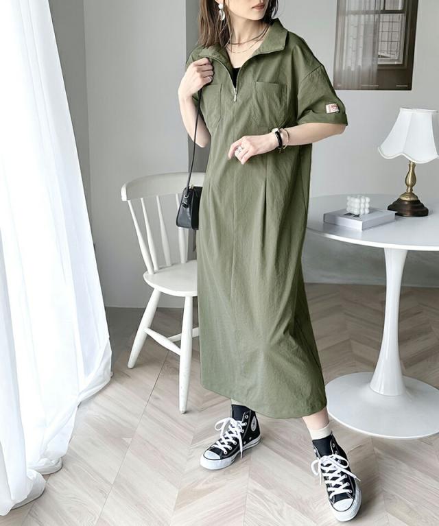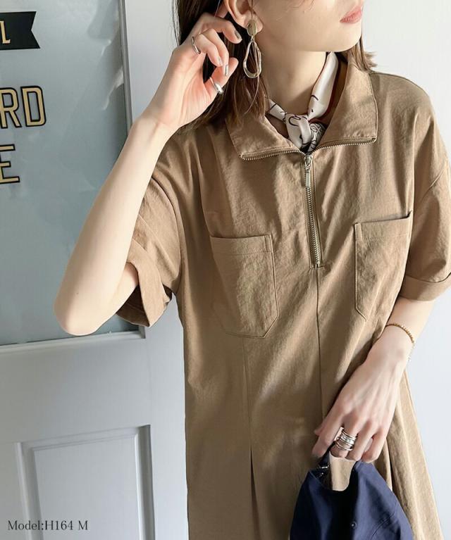 ★《JaVaジャバ 別注》大人のワークテイスト。コットンライクハーフジップワンピース★