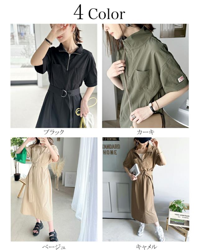 冬新作 クラシカルエルフ javaジャバ 別注 ワンピース レディース ワークテイスト コットン ハーフジップ ワンピ 胸ポケット ウエストベルト バックスリット ストレートライン ゆったり 体型カバー 大きいサイズ 2023ss jv1010215
