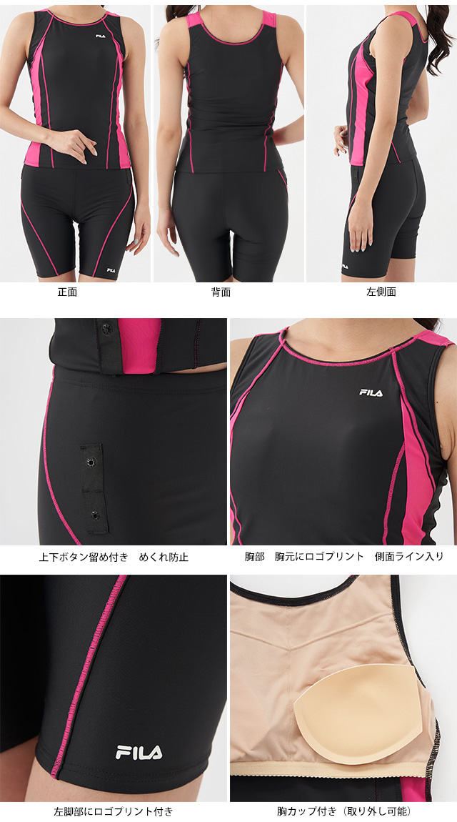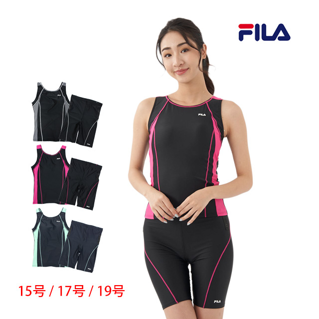 | フィットネス 水着 レディース セパレート 女性用 フィラ FILA ノースリーブ めくれ防止 体型カバー 15号 17号 19号 大きいサイズ |