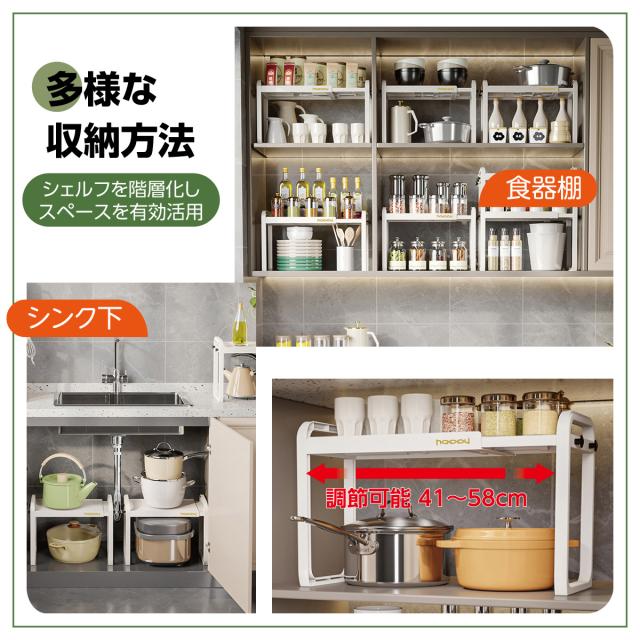 収納ラック 伸縮 2段 食器ラック ラック 収納 キッチン収納 収納棚 北欧 キッチンラック キッチン 浴室 クローゼット 省スペース おしゃれ 新生活 ex-shelf