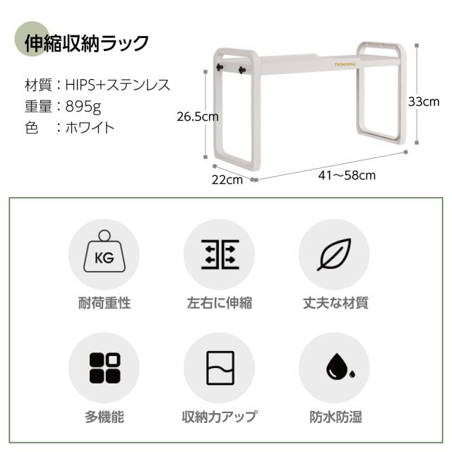 【便利な収縮】置く場所に合わせて41〜58cm横幅を調節できる。