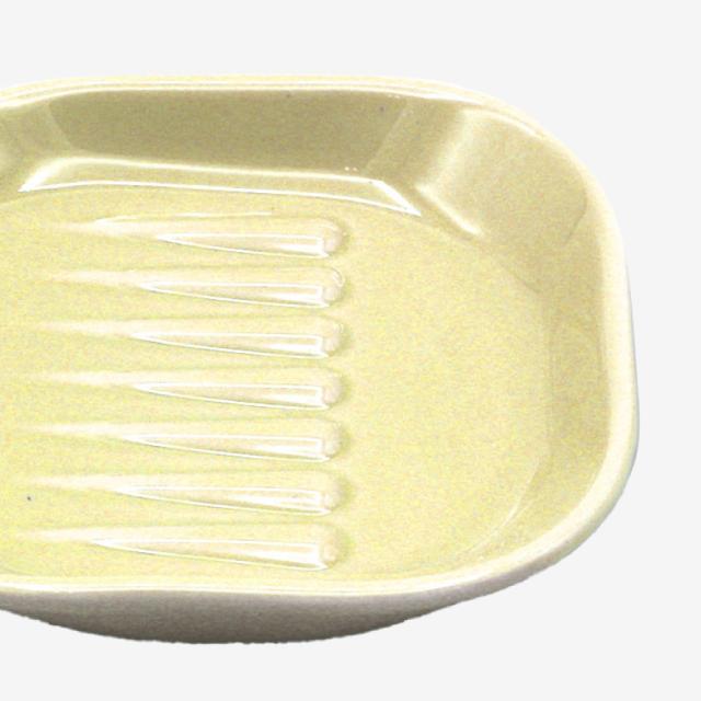 いつもの食事をちょっぴりヘルシーにするお皿「サラエット」。お皿の特殊なスリット形状が余分な醤油を周りに落としてくれる!ヘルシーな四角型の醤油皿。
