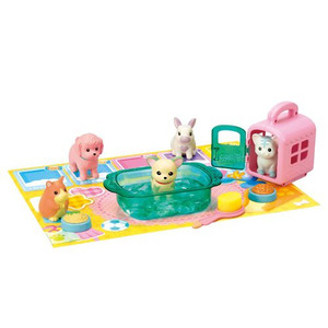 ペット×5(トイプードル、チワワ、ネコ、ウサギ、ハムスター)、まほうのバスタブ、まほうのブラシ&チップ、ごはん×2、キャリーバッグ、収納袋、プレイシート