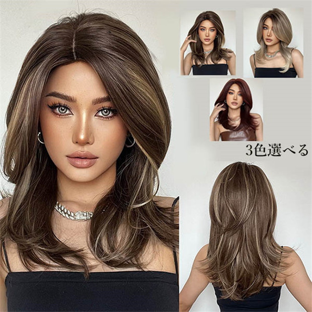 【レビュー投稿で+5%還元】レディース ウィッグ フルウイッグ ふわパーマ 赤褐色パーマかつら レディー ロングヘア ワインレッド ブラウン シルバーグレー