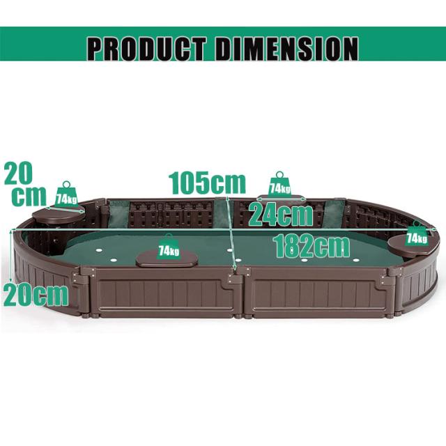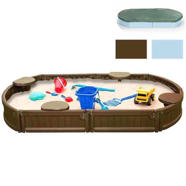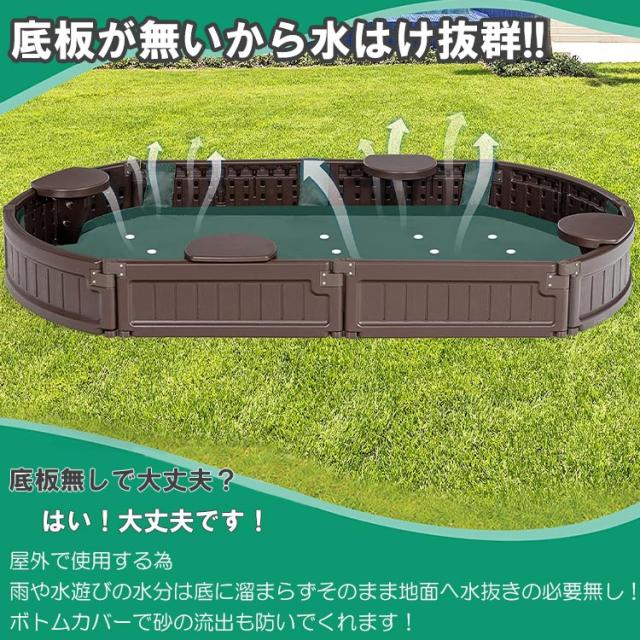 砂場 蓋付き サンドボックス 砂場枠 カバー シート オーバル 長方形 プラスチック製 105x182x20cm 家庭用 大型遊具 すなば フレーム プランター