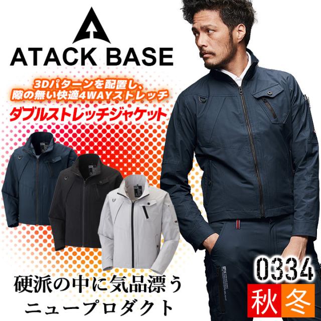 ダブルストレッチジャケット 長袖 秋冬 アタックベース 0334 ジャンパー ブルゾン 作業服 作業着