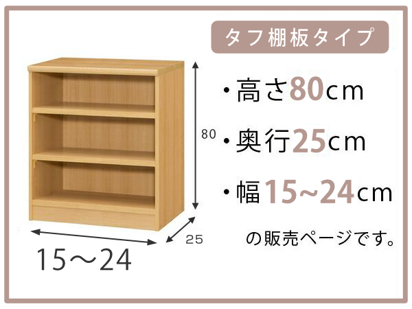 オーダー本棚 タフ棚板 幅15-24cm 奥行25cm 高さ80cm ( 本棚 ラック オーダー 多目的 棚 壁面収納 日本製 オープンラック リビング収納 収納 家具 シェルフ 壁面 )
