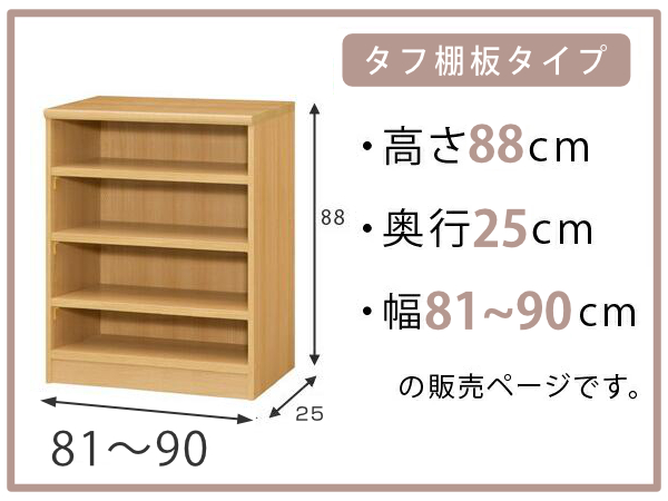 オーダー本棚 タフ棚板 幅81-90cm 奥行25cm 高さ88cm ( 本棚 ラック オーダー 多目的 棚 壁面収納 日本製 オープンラック リビング収納 収納 家具 シェルフ 壁面 )
