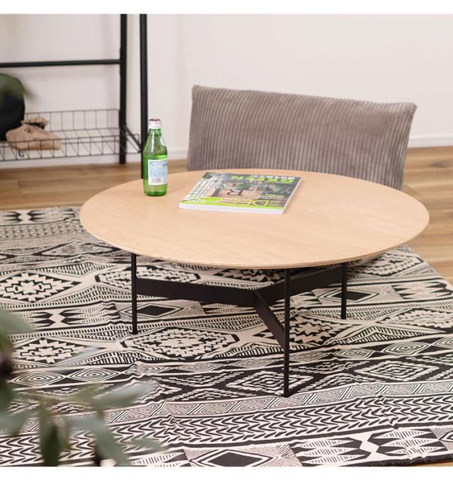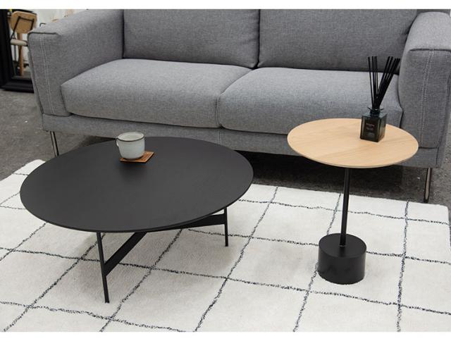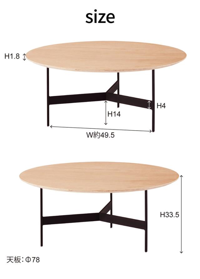 センターテーブル 幅78cm ラウンドテーブル 円形 丸型 アイアン 木製 天然木 オーク おしゃれ シンプル 幅78cm 高さ33.5cm 3本脚 重厚感 モダン ソファ 座椅子 新生活(代引不可)【送料無料】