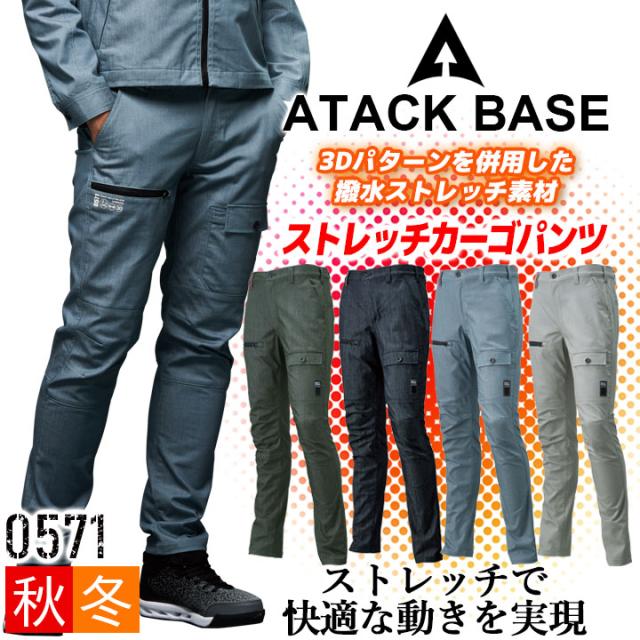 ストレッチカーゴパンツ 秋冬 アタックベース 0571 撥水 ズボン 作業服 作業着