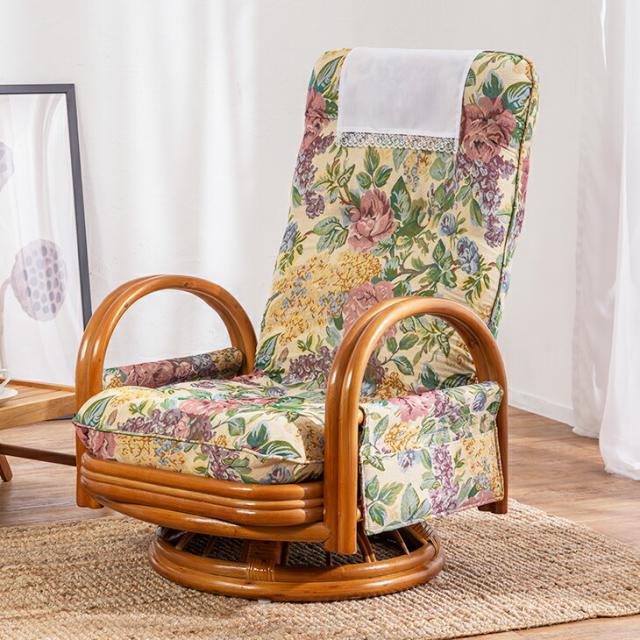 座椅子 高座椅子 リクライニングチェア ラタンチェア 回転座椅子 回転チェア リクライニング座椅子 天然籐 ロータイプ 完成品 送料無料