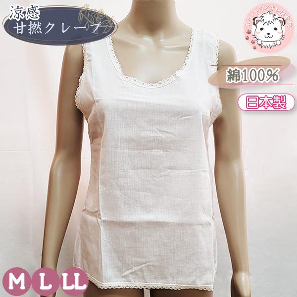 タンクトップ レディース 涼感 甘撚クレープ ラン型インナー 日本製 M/L/LL おためし