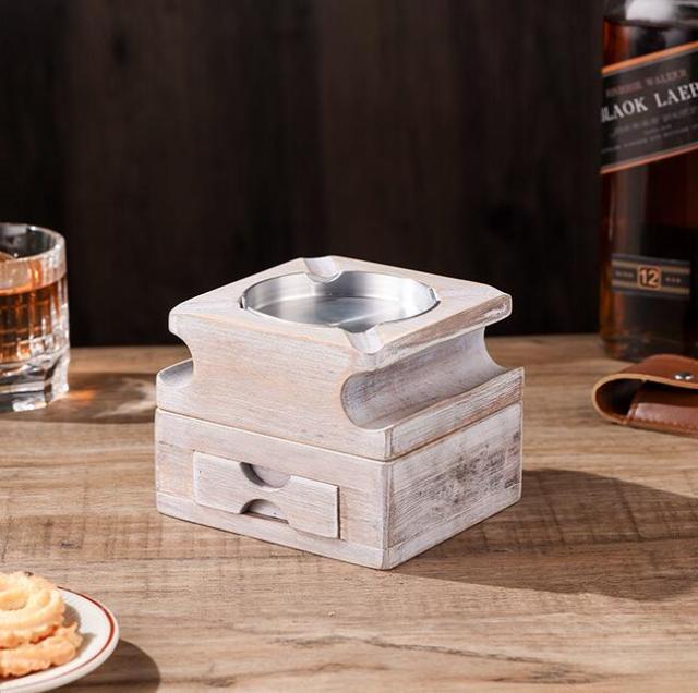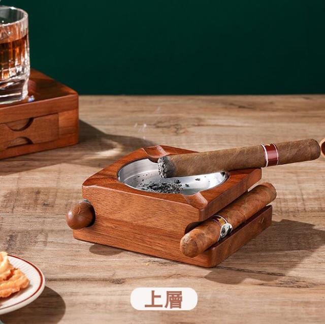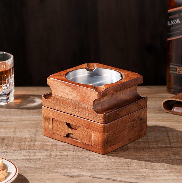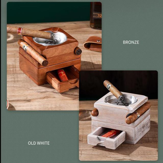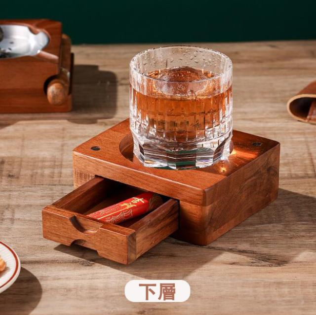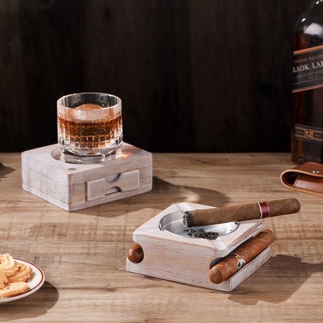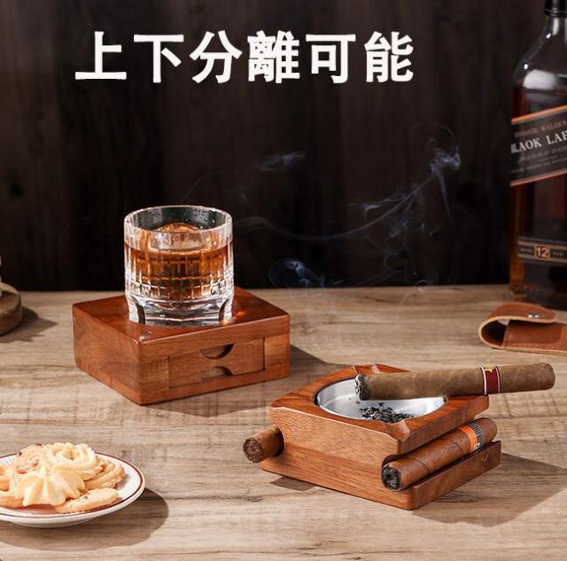 灰皿 |葉巻灰皿コースター 引き出し付き 上下分離可能 木製ウイスキートレイと葉巻ホルダー 葉巻と葉巻カッターを収納できるスロット 取り外し可能な灰皿