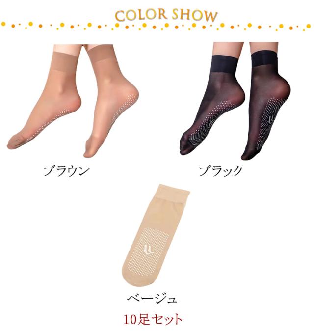 10足セット 滑り止め加工 ストーキングソックス ショートソックス レディース 靴下 透け感 夏用 薄手 送料無料 ナイロンソックス シースルー くるぶし丈 伝線しにくい パンプス サンダル ずり落ちにくい