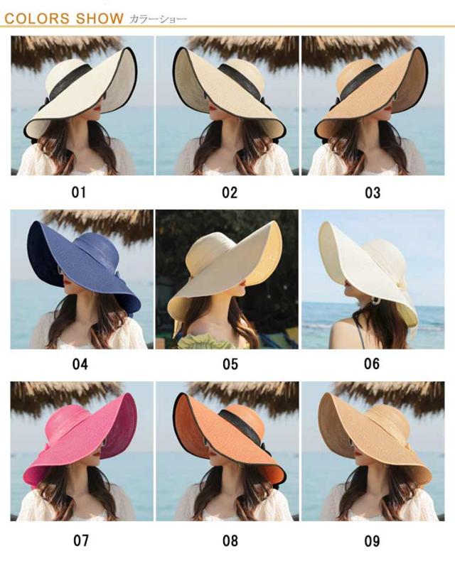 全9色 帽子 レディース 麦わら帽子 小顔 つば広 折りたたみ たためる帽子 あご紐付き リボン 日焼け UVカット ハット ぼうし かぶる日傘 かぶーる日傘 春 春夏 夏 UV対策 紫外線対策 旅行 海 山 アウトドア 母の日 プレゼント 母 ギフト プレゼント 贈り物