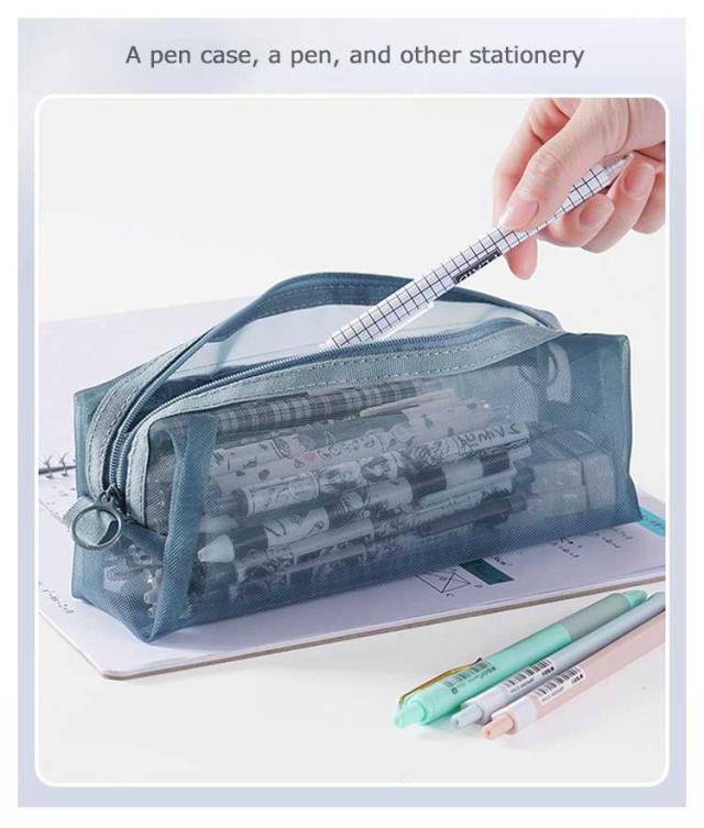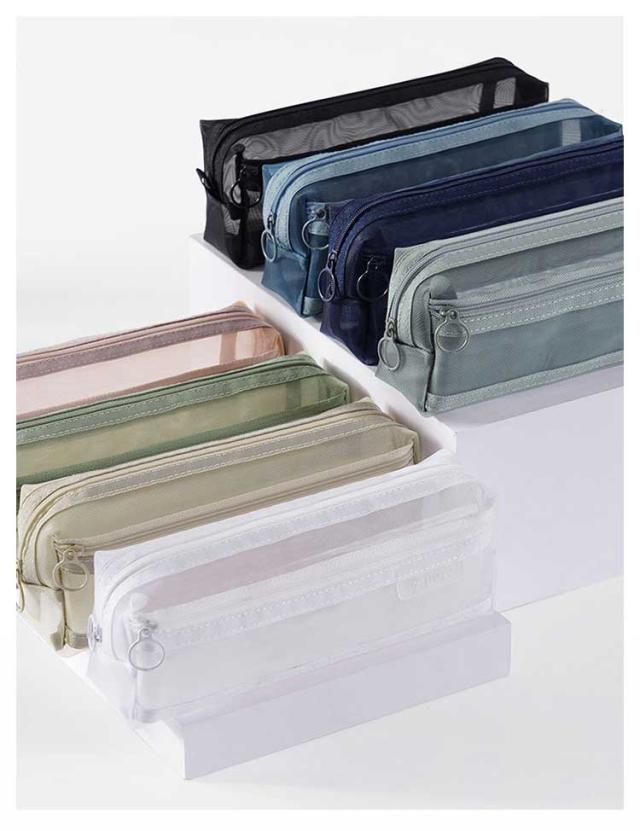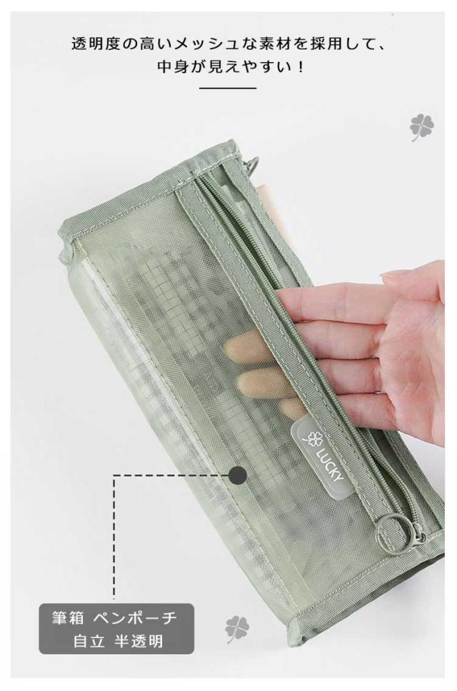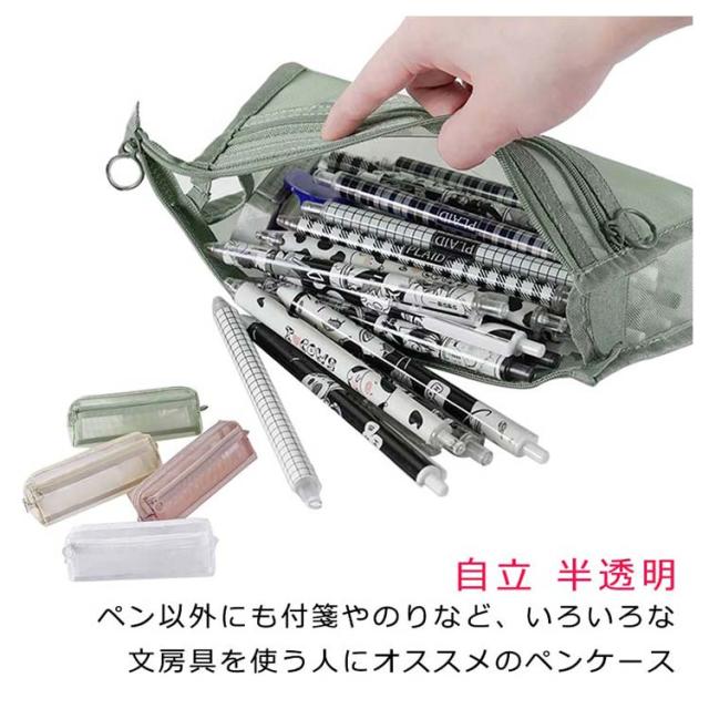収納ポーチ 筆入れ ペン入れ 筆箱 ペンポーチ 自立 半透明 ツールペンケース 文房具 メッシュ ペンケース 薄型 スタンド ペンホルダー 可愛い 文具バッグ 透明 おしゃれ かわいい シンプル 見やすい 大容量 男女兼用 高校生 中学生 小学生 入学祝い 送料無料