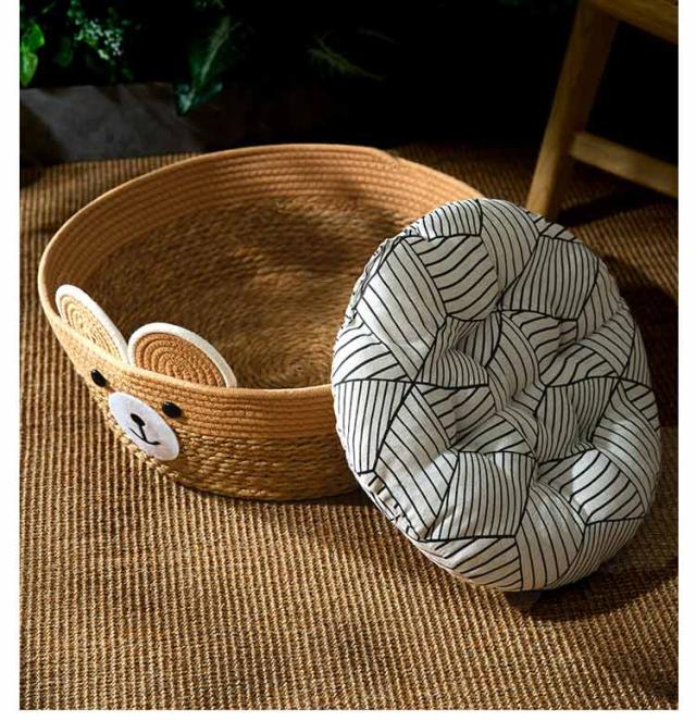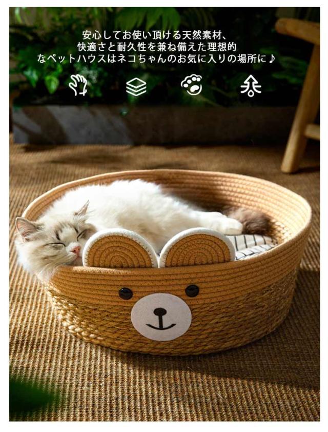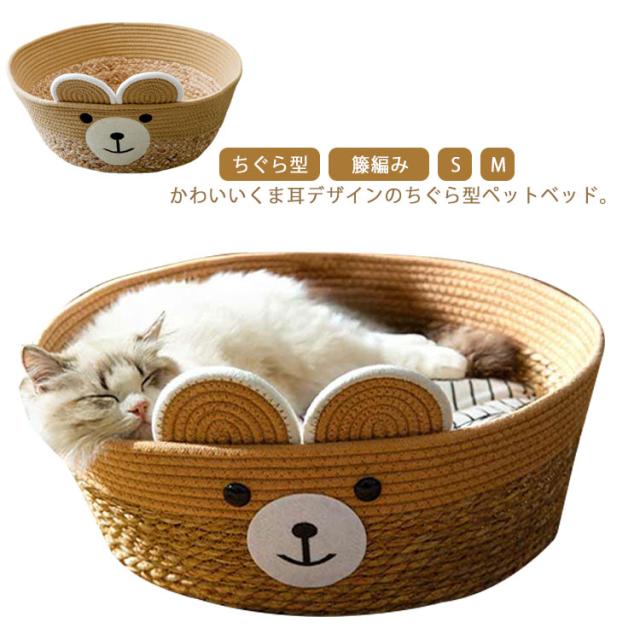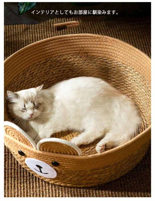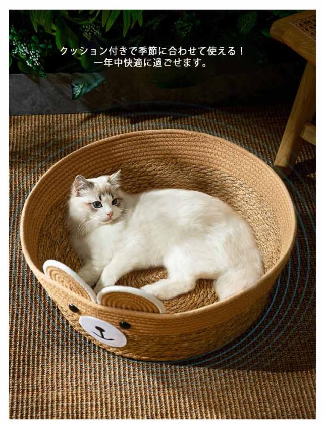 | かわいいくま耳デザインのちぐら型ペットベッド。 クッション付きで季節に合わせて使える!一年中快適に過ごせます。 大きめのサイズ感なので、猫はもちろん小型犬にもおススメ! インテリアとしてもお部屋に馴染みます。 安心してお使い頂ける天然素材、快適さと耐久性を兼ね備えた理想的なペットハウスはネコちゃんのお気に入りの場所に♪ 頑丈な籐で編まれているのでネコちゃんが爪を研いでしまっても壊れにくく長期間ご愛用できます。 | |