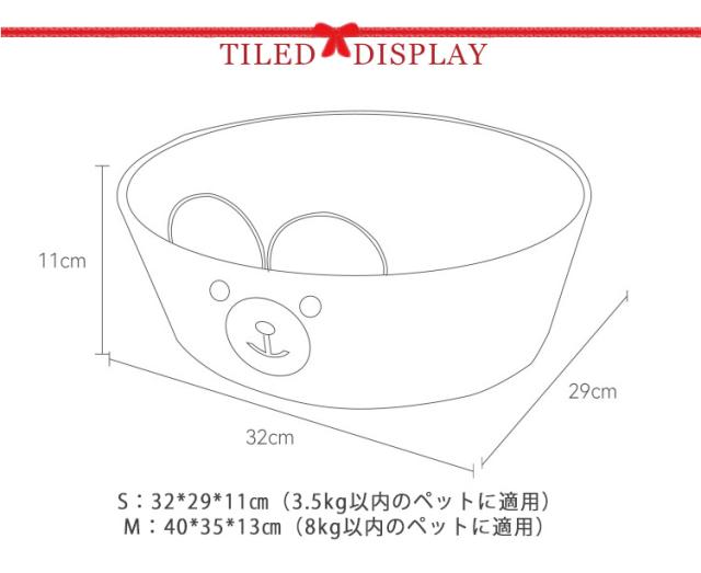 | サイズについての説明 | S:32*29*11cm(3.5kg以内のペットに適用) M:40*35*13cm(8kg以内のペットに適用) |