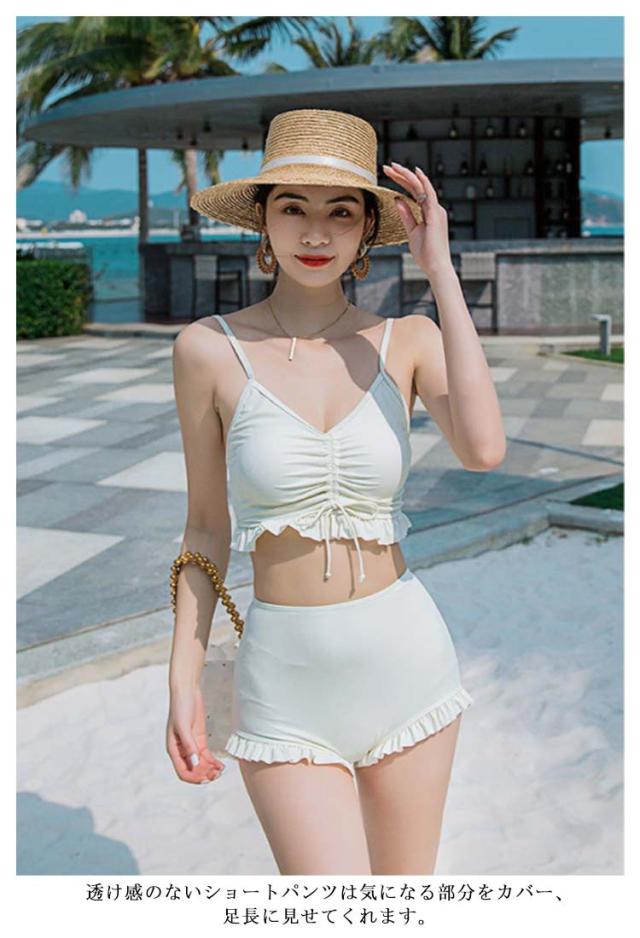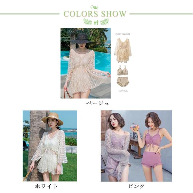 送料無料 タンキニ 水着 レディース 体型カバー 長袖 トップス ハーフパンツ 3点セット ビキニ セパレート ラッシュガード オーバーサイズ 無地 ビスチェ風 体型カバー 大きいサイズ カバーアップ 露出控えめ ベージュ ホワイト ピンク