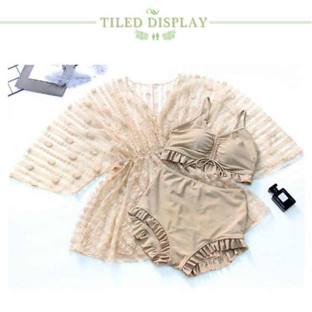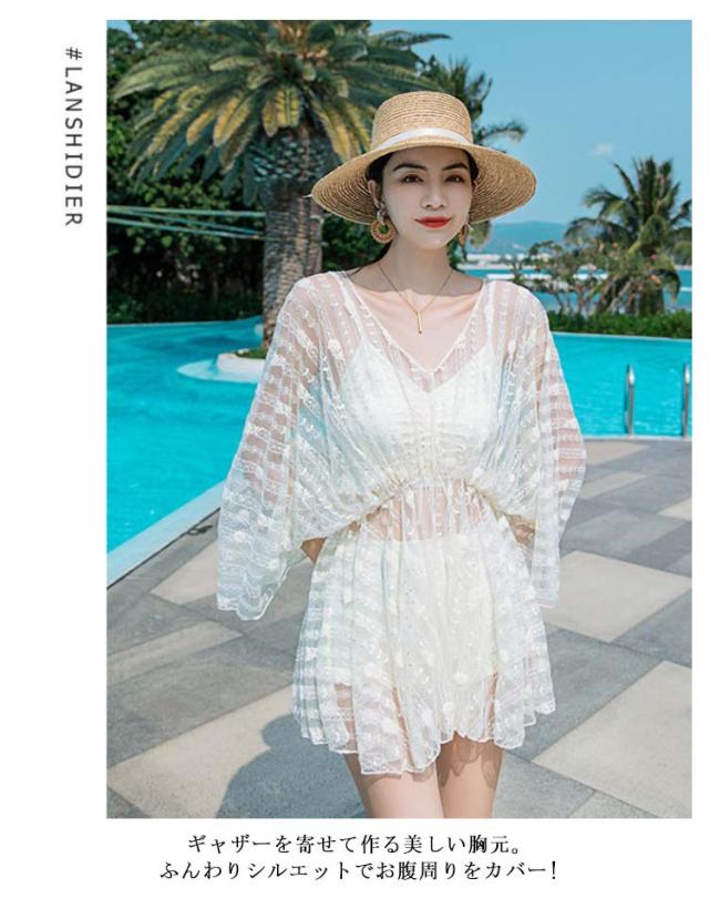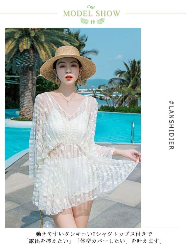| これ1つで全身コーデが決まる便利な3点セット!Tシャツトップス&リボンがポイントのタンキニ&ショーツ&フレアパンツ。 動きやすいタンキニいTシャツトップス付きで「露出を控えたい」「体型カバーしたい」を叶えます」 ギャザーを寄せて作る美しい胸元。ふんわりシルエットでお腹周りをカバー! 透け感のないショートパンツは気になる部分をカバー、足長に見せてくれます。 レースのラッシュガードが上品で女性らしい印象に。普段着感覚で過ごせてそのまま水にも入れる楽チン! | |