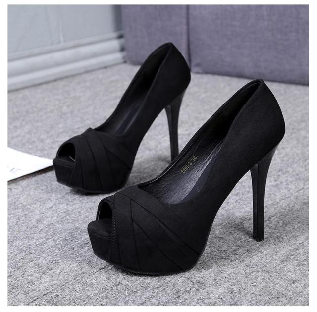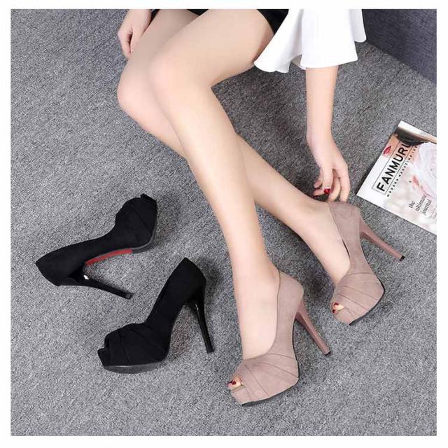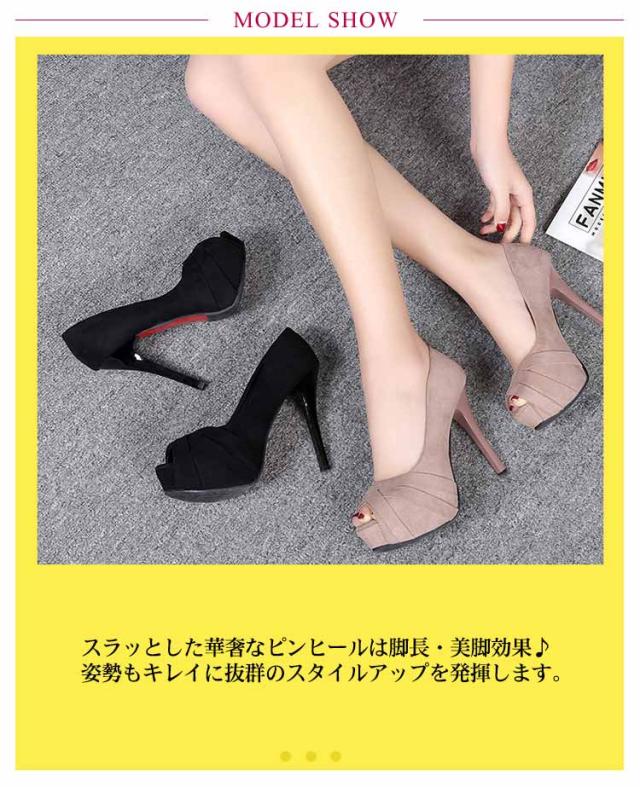 パンプス オープントゥ スエード調 ピンヒール 12cm 超ハイヒール ストーム 3cm 前厚 痛くない サンダル パーティーシューズ 結婚式 キャバクラ 黒 通勤 オフィス 美脚パンプス ブライダルシューズ 結婚式 パーティ 靴