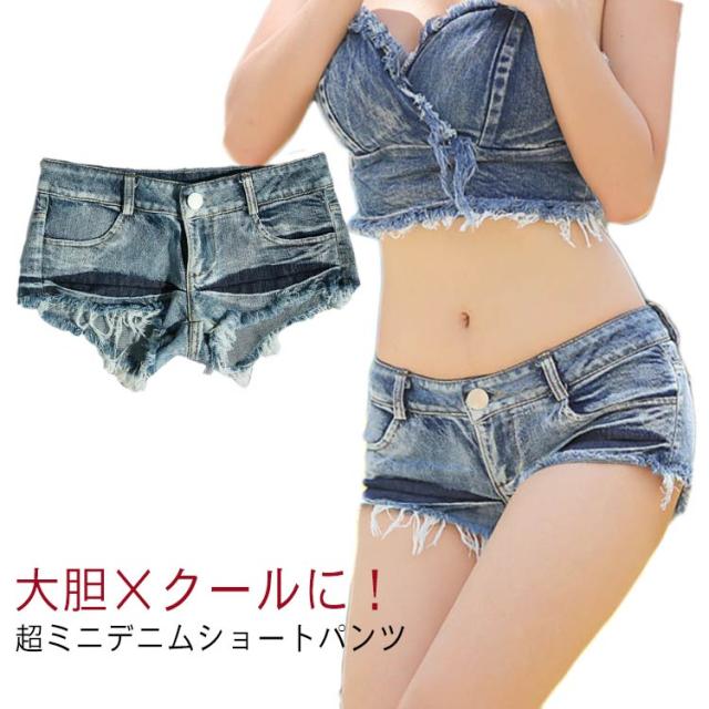 デニム ショートパンツ レディース ローライズ セクシー スーパー極浅 スーパーローライズ ショートデニム 短パン ダンス 衣装 ダメージ ホットパンツ かわいい 可愛い ブルーデニム ジーンズ ジーパン エロい ギャル ファッション おしゃれ ベリーショート