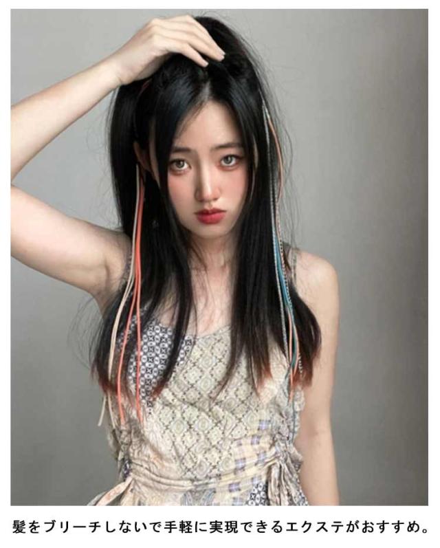 | 初心者さんでも簡単に装着できるクリップタイプのワンタッチエクステ。 クリップ式で簡単に装着でき、自然と地毛に馴染みます♪ 多彩なカラーバリエーションでハイトーンや派手髪好きさんにもピッタリ! ハイライトやインナーカラーなどでアクセントをつけた素敵なヘアスタイルも。 髪をブリーチしないで手軽に実現できるエクステがおすすめ。 | |