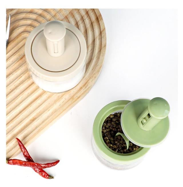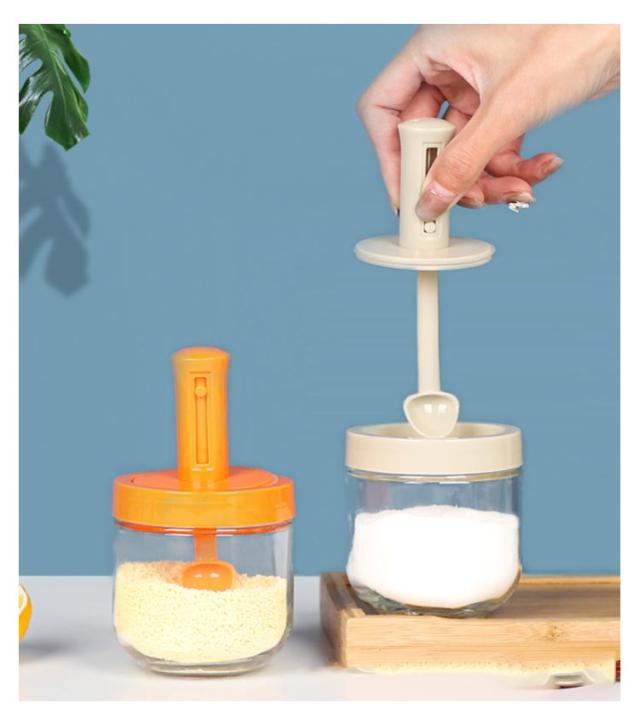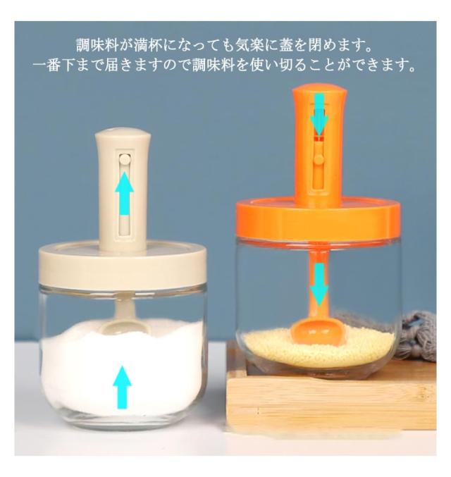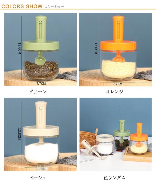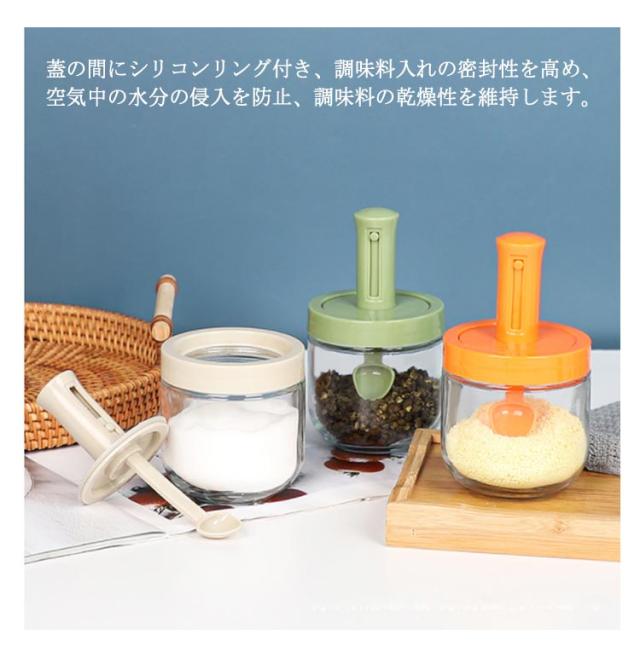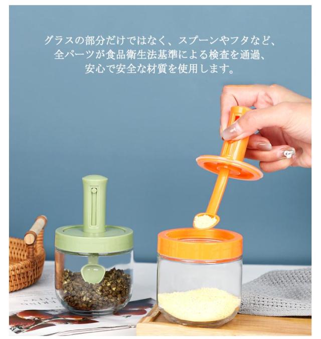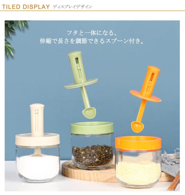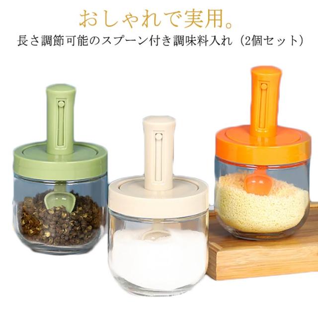 2個セット 調味料入れ スプーン付き 調味料ポット 塩入れ 砂糖入れ 使いやすい おしゃれ 収納 保存 湿気防止 調味料容器 密閉容器 調節可能スプーン付き スパイス入れ