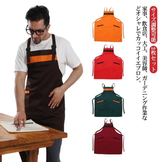 2枚セット エプロン H型 ロング メンズ レディース ツイル 業務用 飲食店 加工ワークエプロン サイズ調整可能 無地 保育士 介護 男性用 父の日 男女兼用 母の日 プレゼント ギフト 農作業 洗車 トリマー 肩紐 園芸 清掃