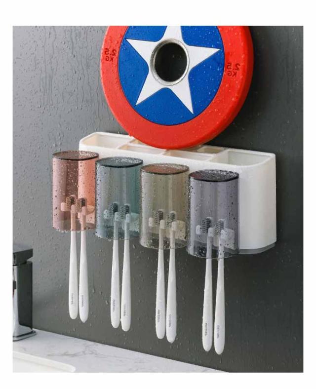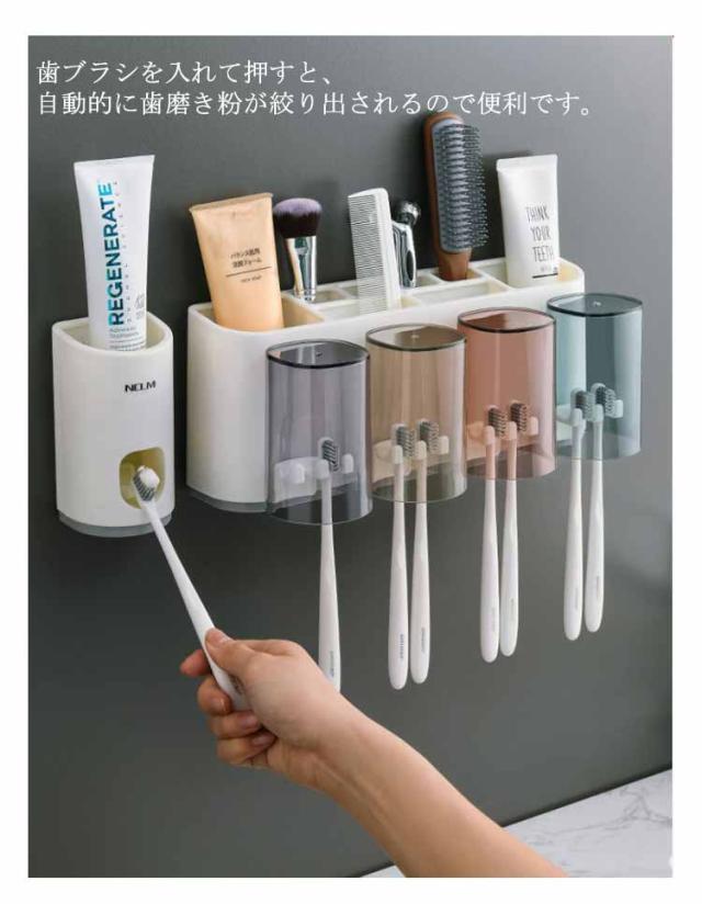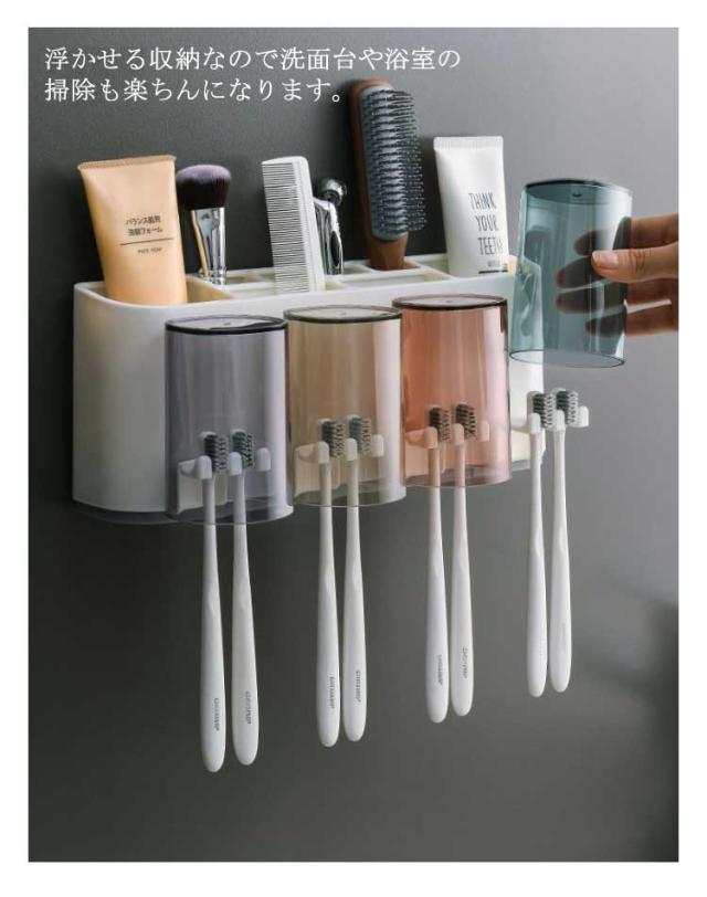 歯ブラシスタンド 歯磨きコップ4個付き 歯磨き粉ホルダー 歯ブラシホルダー おしゃれ 洗面台収納 吊り下げ式 乾燥 一台多役 マグネット 内蔵 壁掛け式 衛生的 歯ブラシ立て バスルーム収納 コップスタンド