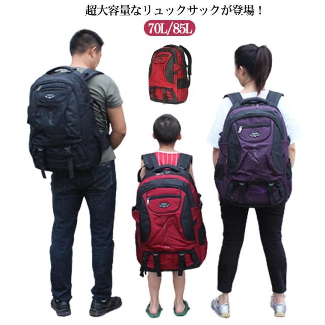 リュック リュックサック 超大容量 70L 85L メンズ バックパック 軽量 撥水 防水 大人 学生 男子 アウトドア 登山 防災 海外旅行 大きめ リュック レディース 丈夫 しっかり おしゃれ シンプル ブラック 黒 グレー 男女兼用 【送料無料】