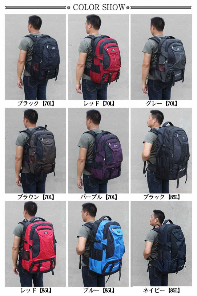 | 色 | ブラック【70L】 レッド【70L】 グレー【70L】 ブラウン【70L】 パープル【70L】 ブラック【85L】 レッド【85L】 ブルー【85L】 ネイビー【85L】 |