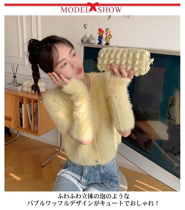 | トレンドのポップコーンのような生地感がおしゃれなペンケース。 ふわふわ立体の泡のようなバブルワッフルデザインがキュートでおしゃれ! 春夏にぴったりな8色のパステルカラー展開。 ペンなどの文房具やメイクブラシなど収納できます。 | |