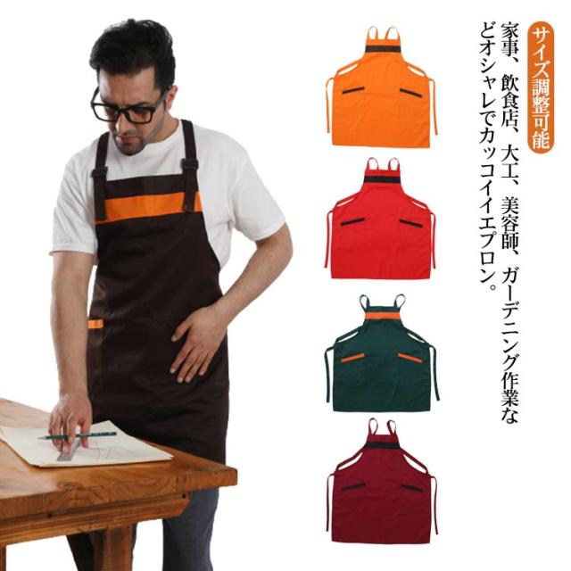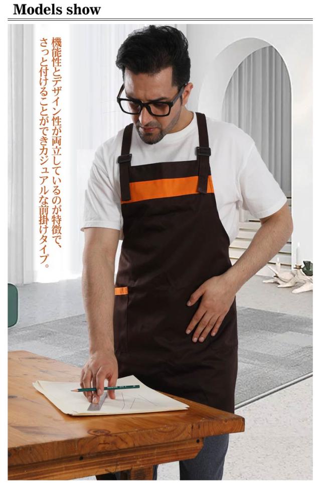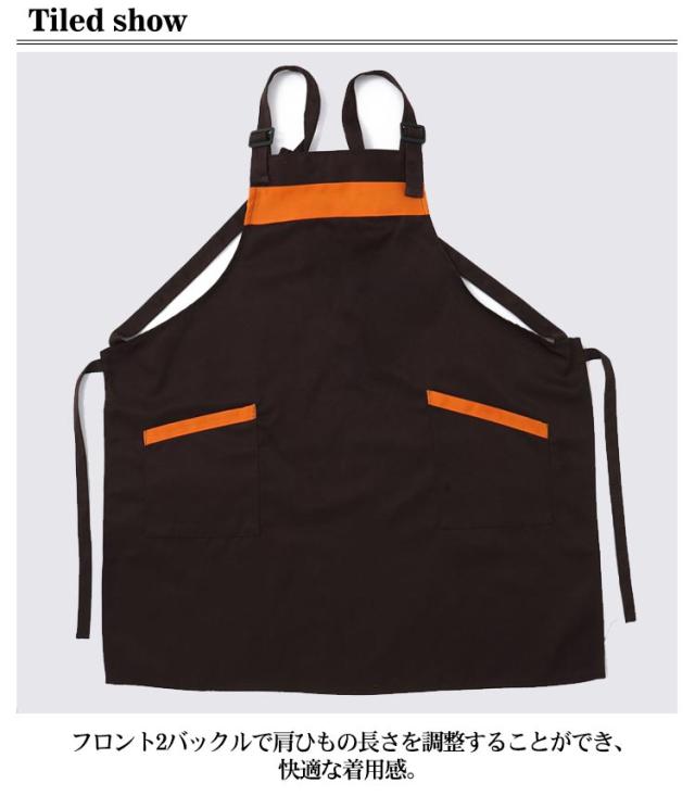 | 家事、飲食店、大工、美容師、ガーデニング作業などオシャレでカッコイイエプロン 機能性とデザイン性が両立しているのが特徴で、さっと付けることができカジュアルな前掛けタイプ。 フロント2バックルで肩ひもの長さを調整することができ、快適な着用感 多機能ポケットは、実用的なデザインになっており、ペン、スマートフォン(携帯電話)、ハサミ、メモ帳などの実用的なツールを収納する | |