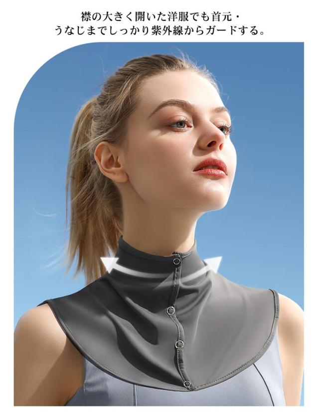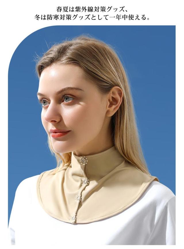 | 首の日焼け防止 UPF50+ UVカット ネックカバー 前ボタンタイプで開閉自由自在!お洒落に紫外線対策♪ 襟の大きく開いた洋服でも首元・うなじまでしっかり紫外線からガードする 外出時や運転時、ガーデニングにぴったり 春夏は紫外線対策グッズ、冬は防寒対策グッズとして一年中使える | |