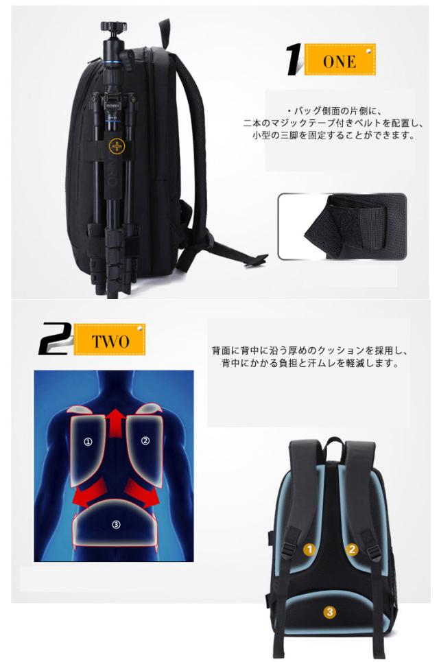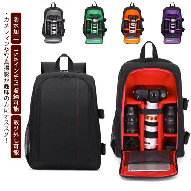 カメラバッグ カメラリュック 一眼レフ収納 レンズ収納 三脚ホルダー収納 大容量 防水加工 15.6インチPC収納可能 サイドポケット 仕切り 取り外し可能 バックパック 散歩 旅行 多機能 アウトドア 全5色