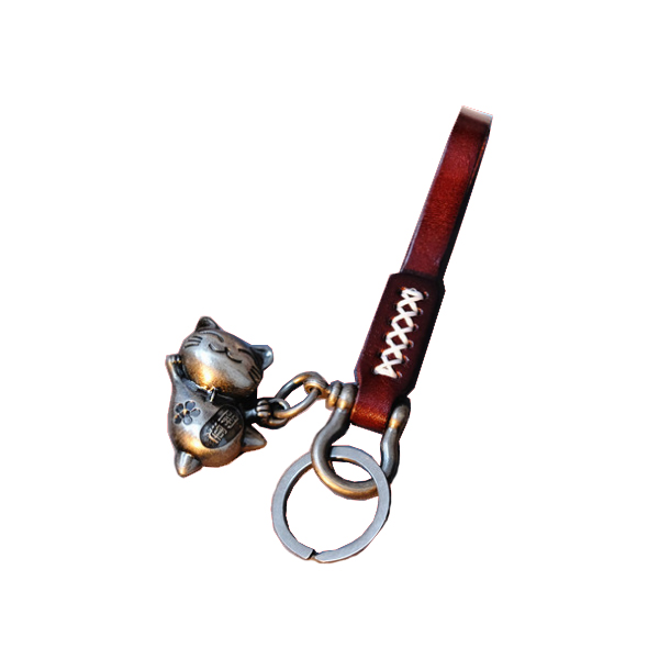 牛革 にゃんこ ストラップ キーホルダー 猫 招き猫 キーチェーン レザー