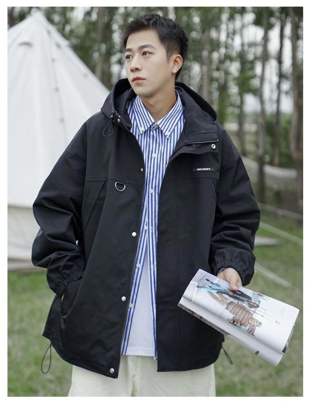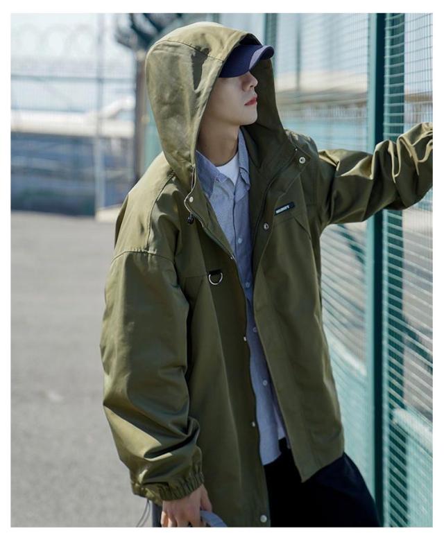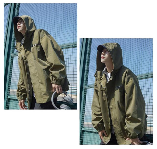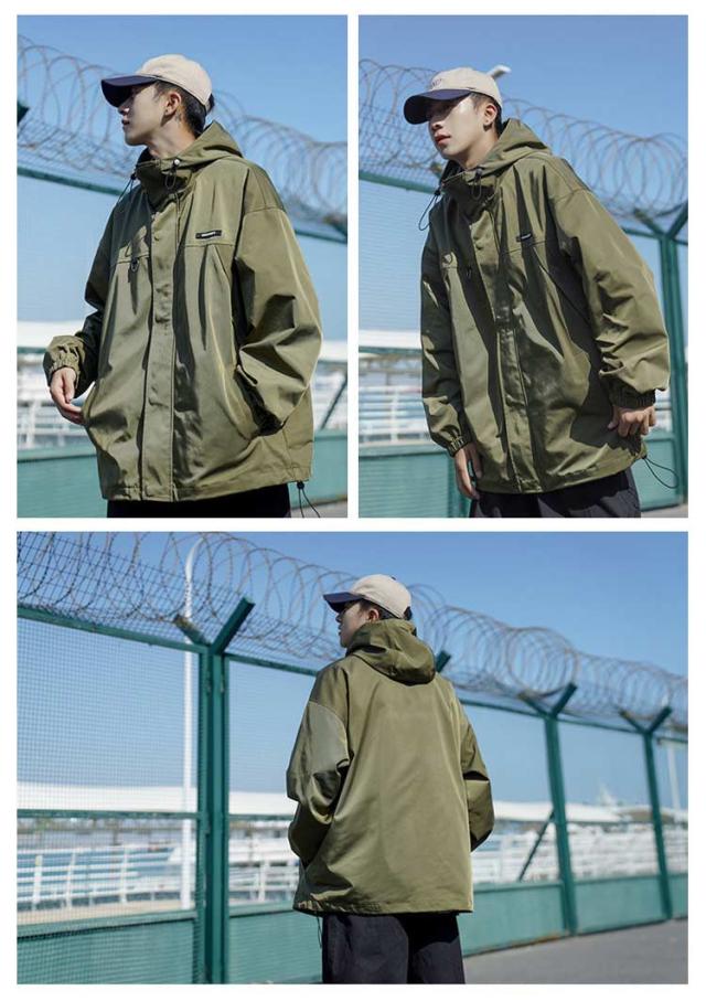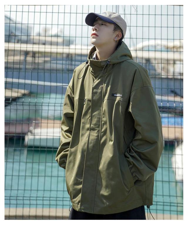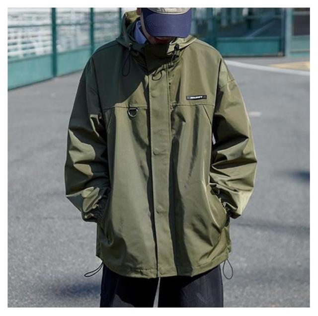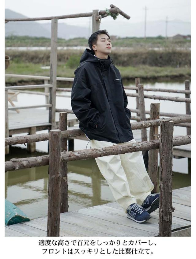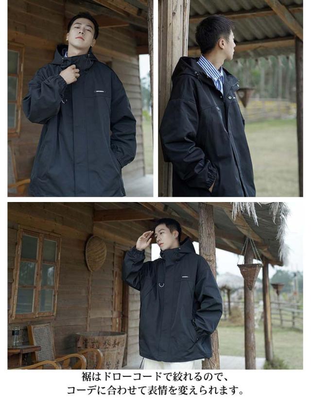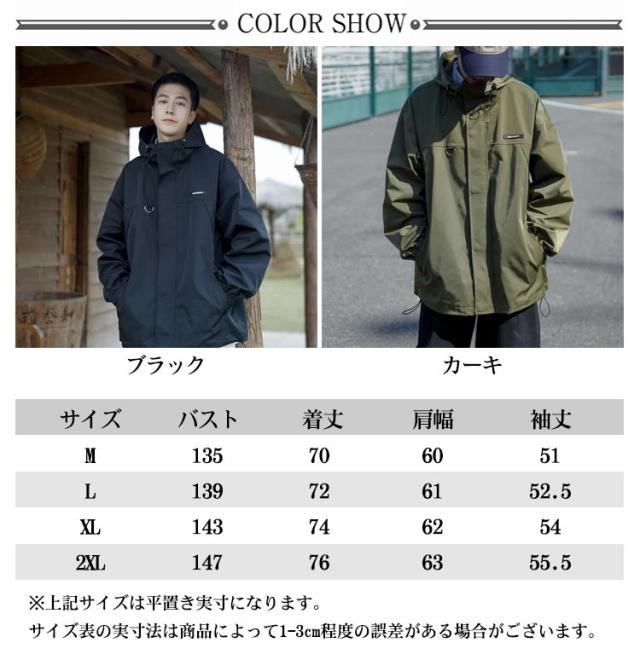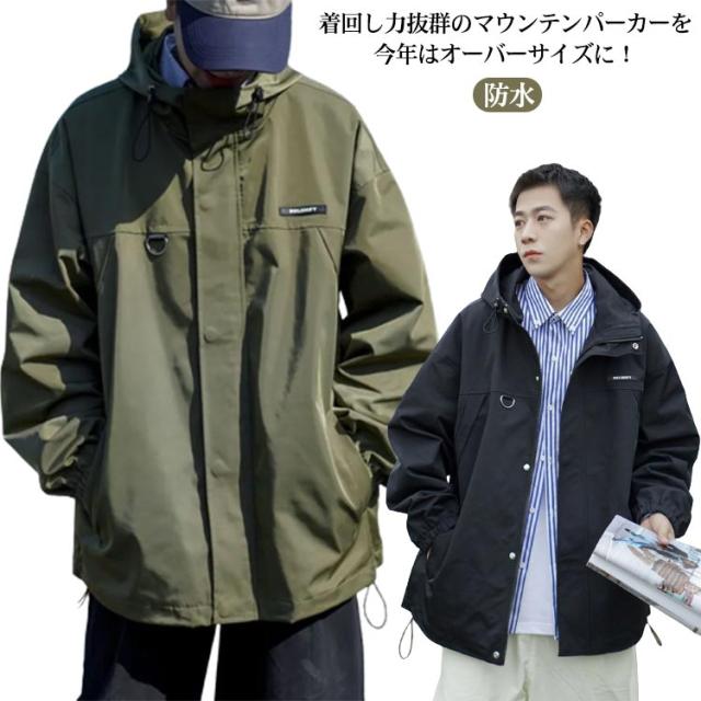 マウンテンパーカー メンズ ブルゾン ライトアウター 春 アウター オーバーサイズ フード付き 裏地付き 撥水 防水 秋 カジュアル 通学 通勤 スプリングコート アウトドア 無地 大きいサイズ M L XL 2XL 学生 男子 カーキ 黒
