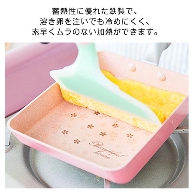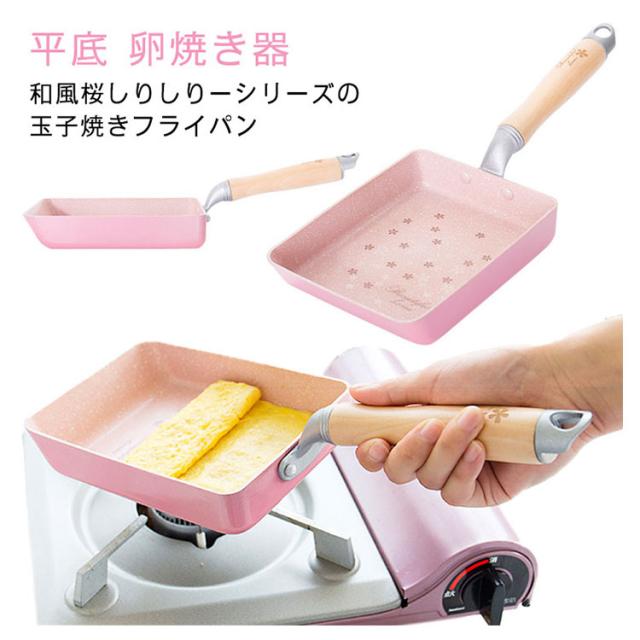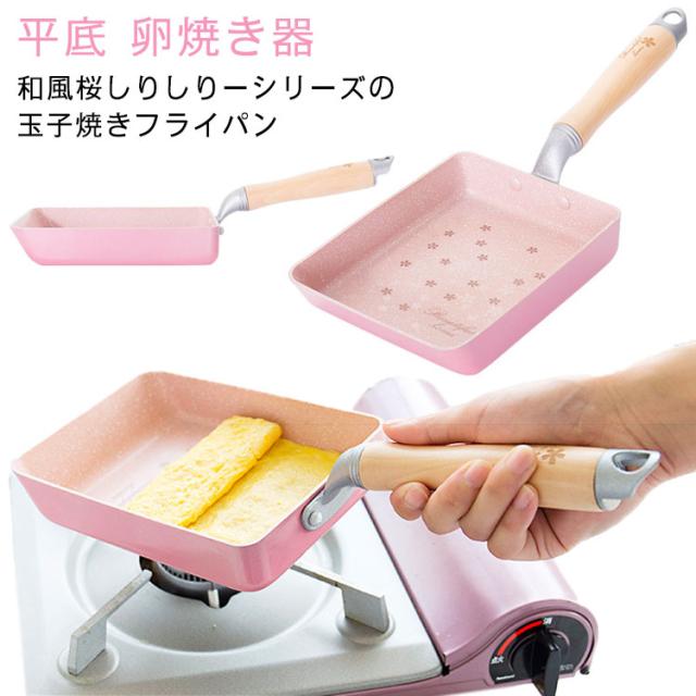 玉子焼きフライパン 桜 ピンク 卵焼き IH対応 ガスレンジ可 角型 卵焼き用 フライパン 単品 玉子焼き 平底 卵焼き器 玉子焼き器 エッグパン お弁当 おしゃれ 和風 プレゼント 玉子焼 なべ 鍋 映え SNS