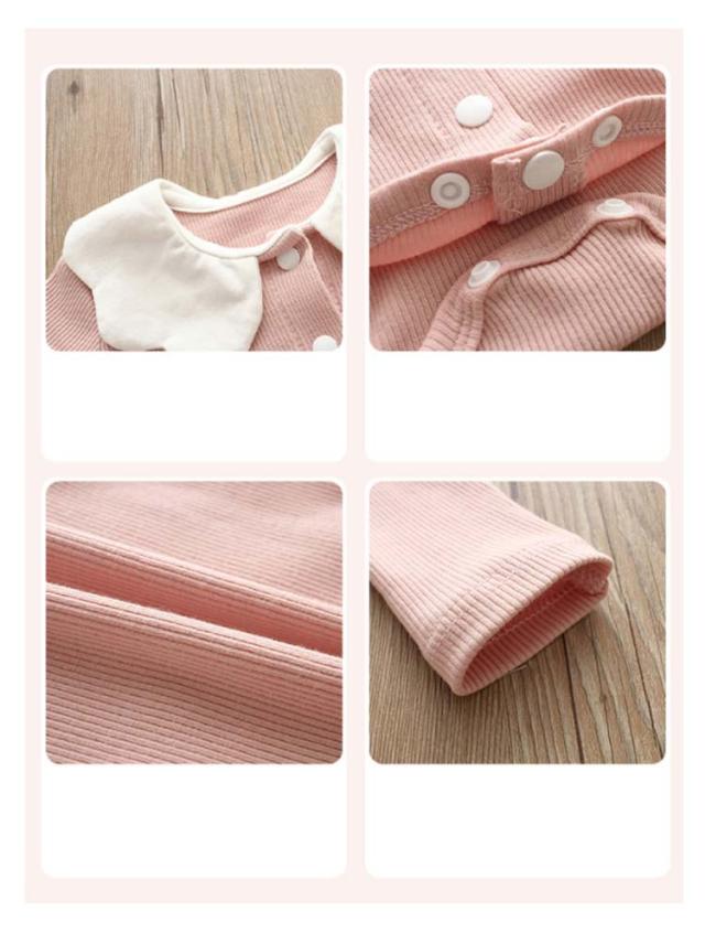 | ・スカラップ襟が可愛いボディスーツ ・通年着用できるコットン素材で快適に過ごせます。 ・スナップボタンで全開になるので、首が座る前の赤ちゃんに着せやすく、新米ママにもおすすめ! ・股下にもスナップが付いていて、足をバタバタしてもはだけにくく、オムツ替えもラクラクな設計になっています。 ・無地ベースだから着回し抜群。ブルマやチュチュと合わせて、キュートに着こなせます。 | |