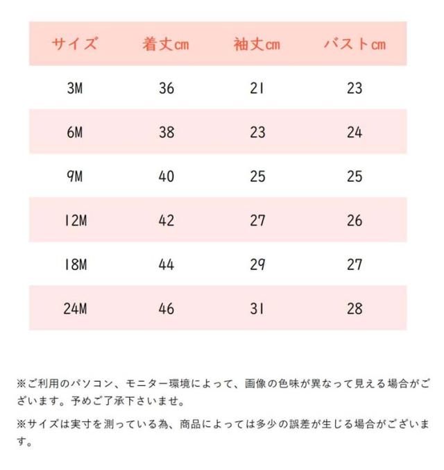 | サイズ | 3M 6M 9M 12M 18M 24M |