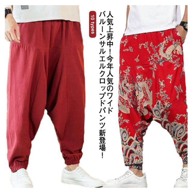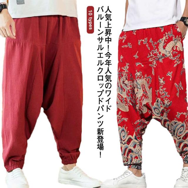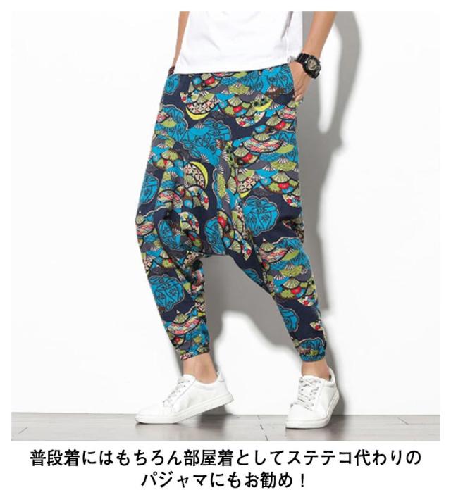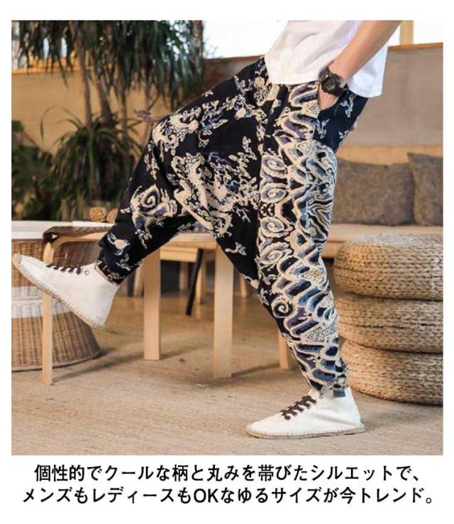 送料無料 サルエルパンツ エスニック柄 アラジンパンツ タイパンツ メンズ レディース ユニセックス ワイドパンツ 幾何学柄 民族柄 エスニック柄 ポケット付き イージーパンツ ハーレムパンツ エスニック アジアン