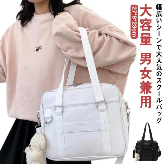 スクールバッグ 合皮 女子高校生 ショルダー スクールショルダーバッグ レディース メンズ サブバッグ おもちゃ付き 送料無料 JKバック トートバッグ コスプレ スクバ 女子 男子 高校 学生 中学 通学 学校 学生鞄 スクバ 斜め掛 バッグ 制服 かわいい 大容量 送料無料